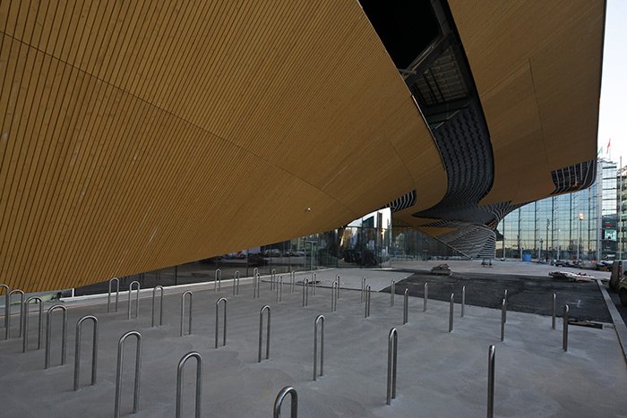 Pyöräpysäköintiä sisäänkäynnin vieressä lipan alla ja näyttäisi olevan telineiden välien mitoituskin kunnossa. Hienoa Oodi!https://twitter.com/helviestinta/status/1068370674442485761 …