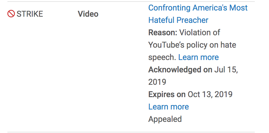 It’s about hate. It doesn’t matter if you explicitly argue against it: it’s enough for their asinine algorithm or “standards” to flag your content. It’s the same principle that allows idiots from claiming that not believing in any gods is a belief.