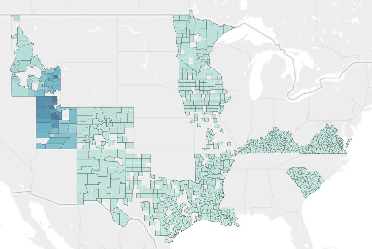 I'd expect high in the mountain west (Utah, Idaho, Colorado, New Mexico) but not nearly as high elsewhere.