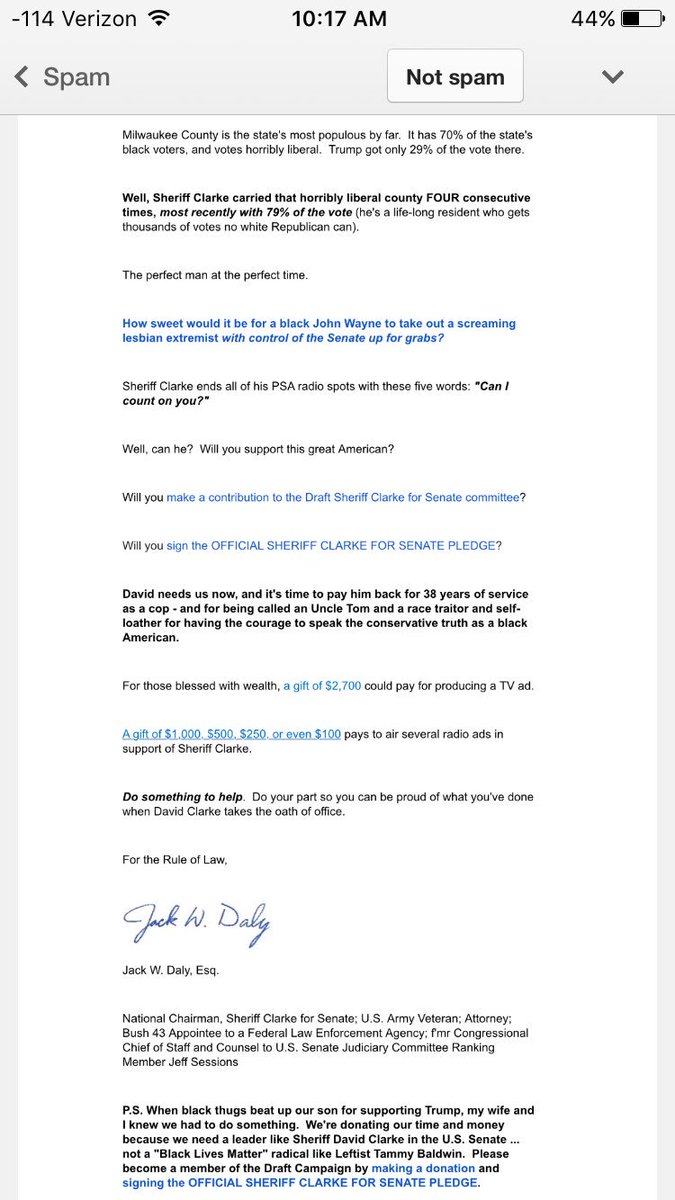 Black conservative candidates have long been a winning formula in direct mail but this is the first time I've seen it paired with racism