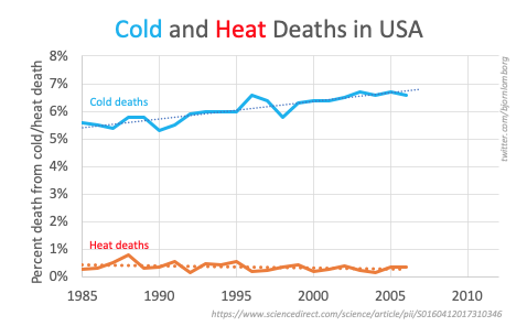 There is nothing good about heatwaves and we should be concerned by 100s of deaths in Northwest, or indeed the 2,400+ dying from heat across the US But we should also care about the 100,000+ that die from cold in US each year Read my USAToday column herehttps://eu.usatoday.com/story/opinion/2021/06/25/climate-change-science-media-spread-fears-ignore-possible-positives/7738009002/ …