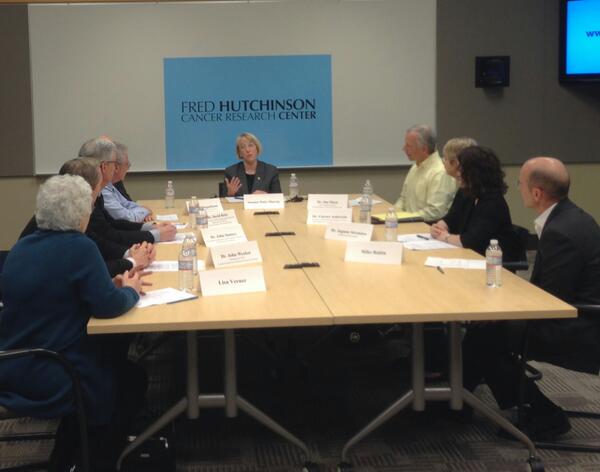 Sen. Murray at @HutchinsonCtr in #Seattle discussing #sequestration impact on #health #research & patients today.pic.twitter.com/PywLU7f5Gy