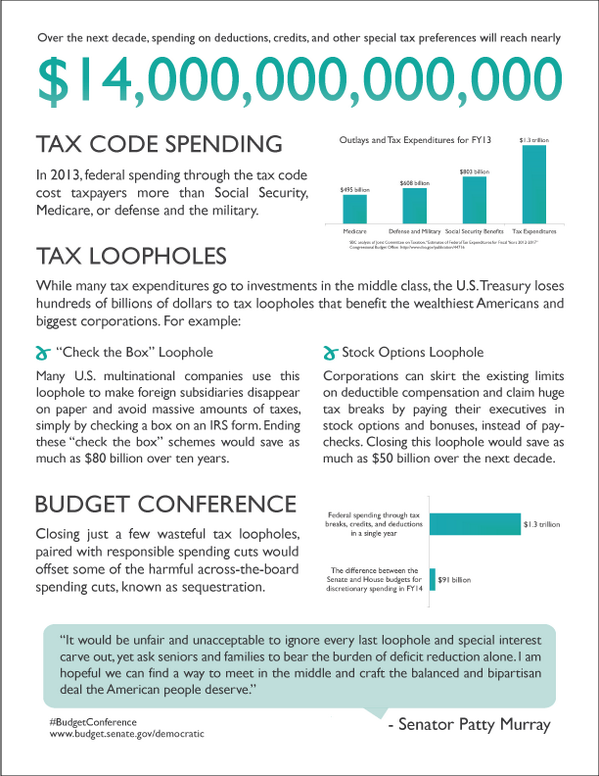 Sen. Murray: Closing tax loopholes should be part of the #budgetconference. http://www.washingtonpost.com/opinions/closing-tax-loopholes-should-be-part-of-the-budget-conference/2013/11/08/41df32d2-47f8-11e3-b6f8-3782ff6cb769_story.html …pic.twitter.com/VrY908FMet
