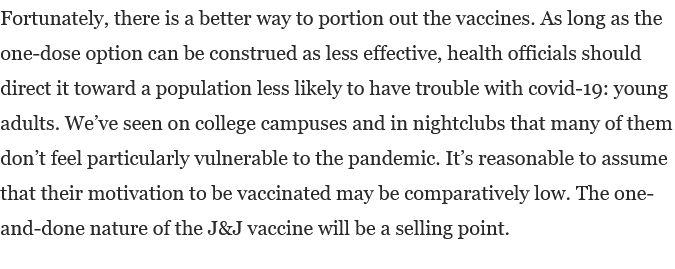 Opinion | The one-dose vaccine is great, but people are skeptical. So give it to young adults. https://www.washingtonpost.com/opinions/the-one-dose-vaccine-is-great-but-people-are-skeptical-so-give-it-to-young-adults/2021/03/05/16843ffa-7dd4-11eb-a976-c028a4215c78_story.html?tid=ss_tw …pic.twitter.com/frF6lksmbA