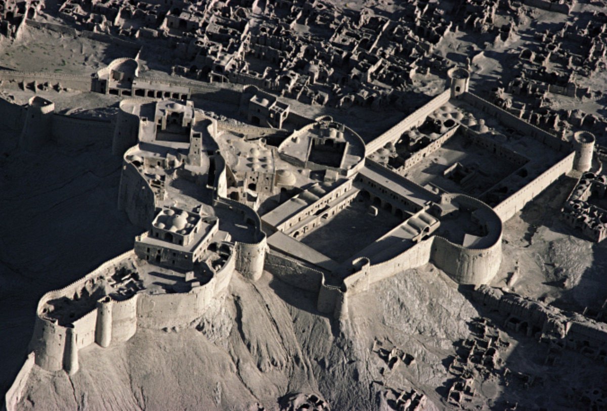The fortress at Qalat-i Gird in Sistan, Iran, photographed from the air as sand dunes wash over its ruins. (