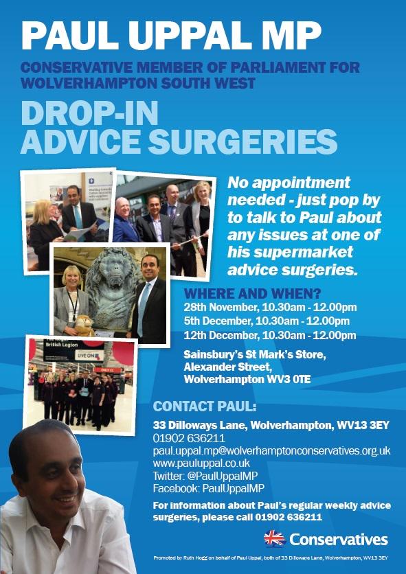 Over November and December I will be holding a series of drop-in advice surgeries in