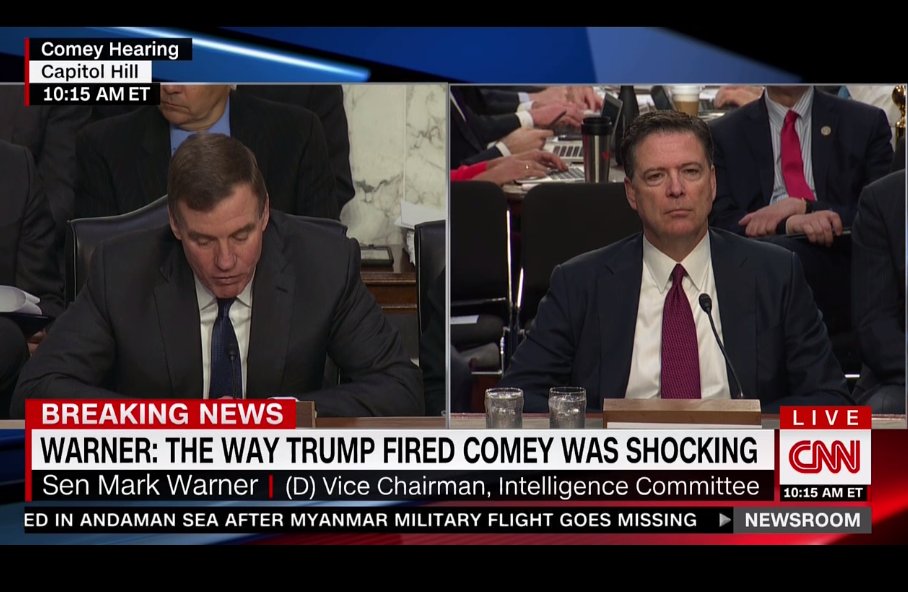 Warner reviews full context of shocking Comey firing, numerous Trump attempts to intervene in FBI investigation raise serious Qs about POTUSpic.twitter.com/1cdaxDHRYP