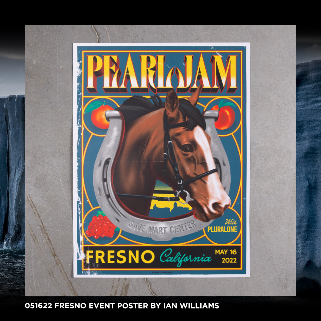 Pearl Jam returns to Fresno, CA tonight. See you there. Artwork by: Ian Williams The event poster and merch are all available at the show tonight. The outdoor merch stand opens at 1pm.pic.twitter.com/Wzd0OVS0wd