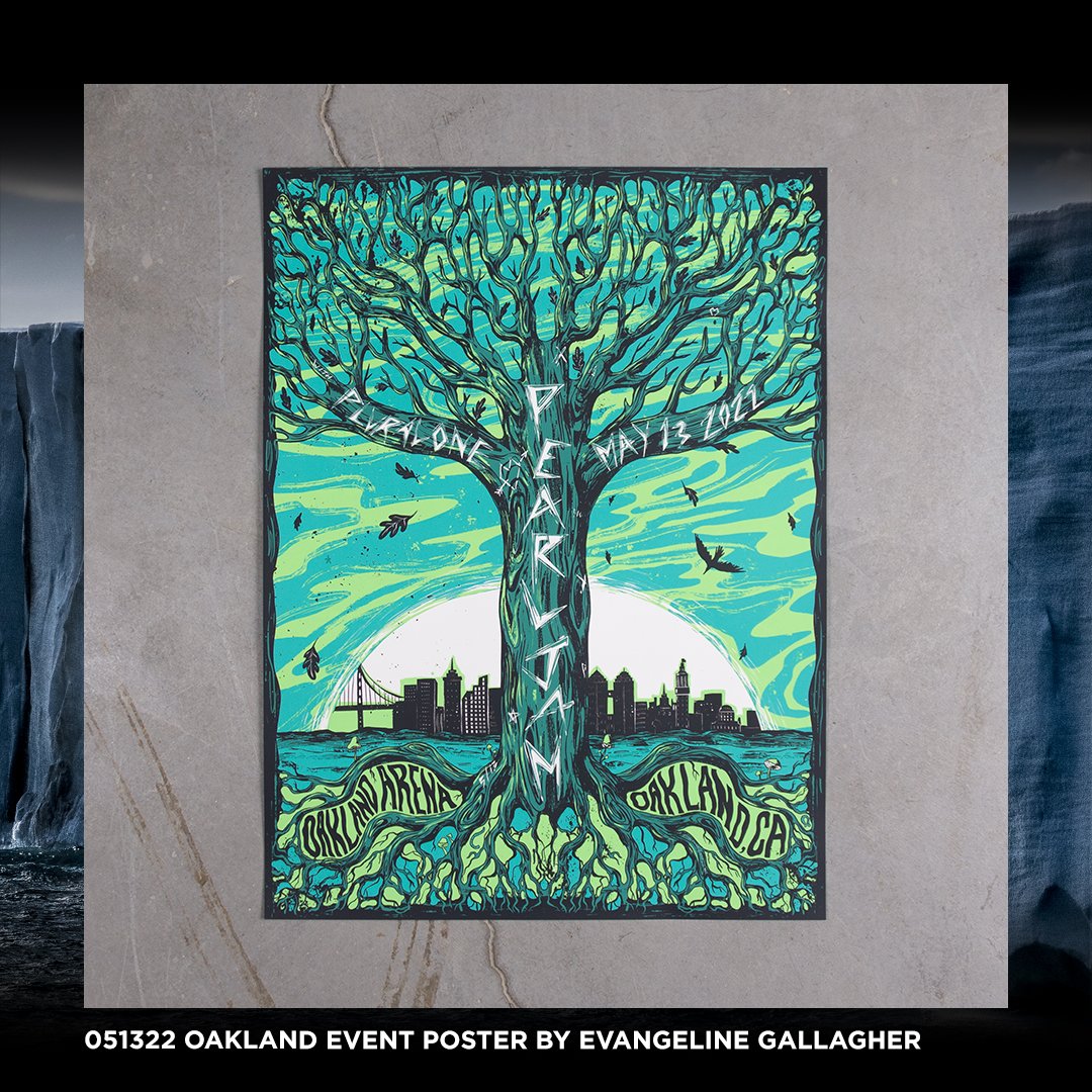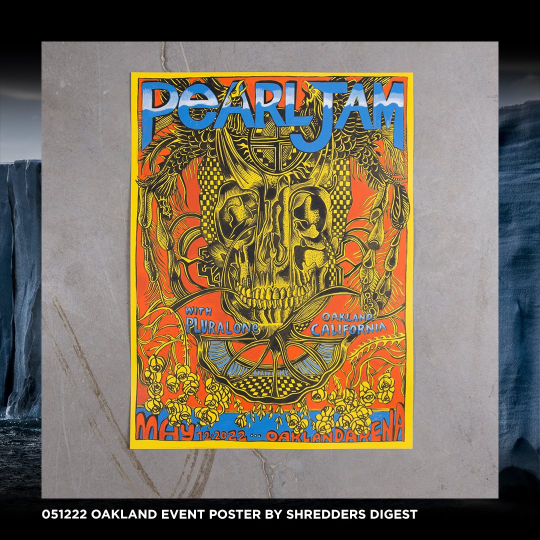Oakland, CA tonight for Night 1 of Pearl Jam at Oakland Arena. Artwork by: Shredders Digest The event poster and merch are all available at the show tonight. The outdoor merch stand opens at 1pm.pic.twitter.com/85NdatufFA