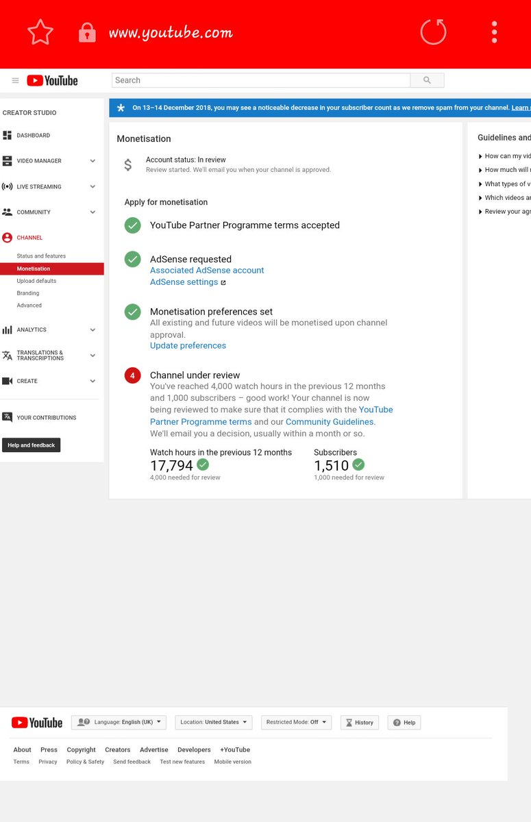 Sir I have more than 1000 subscribers and 4000 watchtime hours.I had applied for monetization in July,but till now I didn't heard anything from you.Sir can you please review my channel I don't have any copyright strikes.Hope to hear soon from you.
