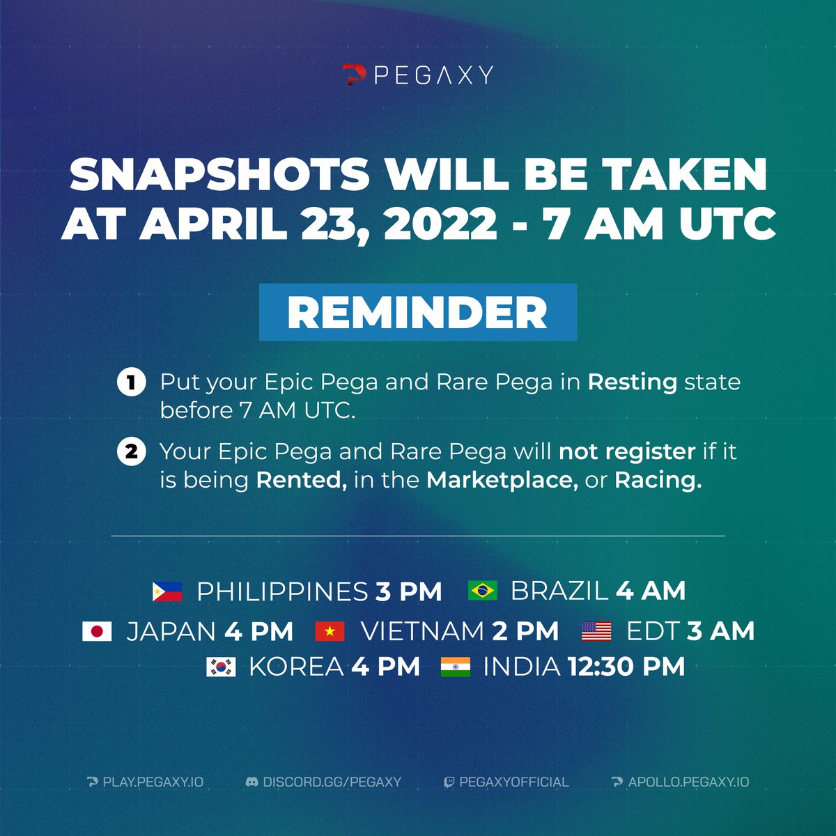 Quick reminder to have at least ONE Rare or Epic Pega in resting state by the time of the snapshot in order to be eligible!pic.twitter.com/78wlzvxdLa