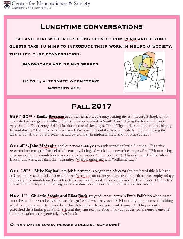 @johndmedaglia tomorrow, Oct 4th at noon, for Penn's Center for Neuroscience and Society "Lunchtime Conversations" in Goddard 200.pic.twitter.com/5eLu4Z9vc5