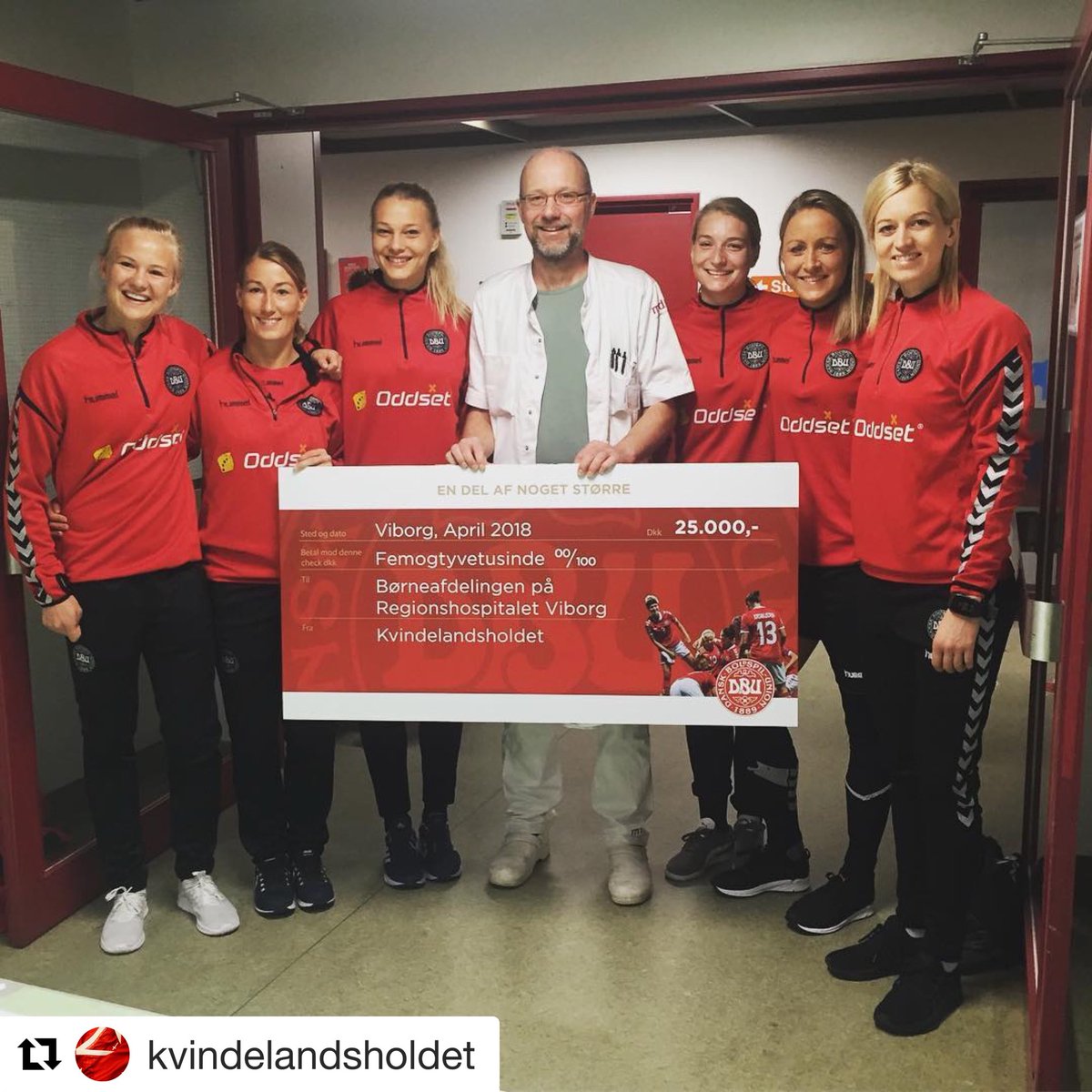 Kvindelandsholdet donerer 25.000 kr. til børneafdelingen på Viborg Regionshospital: https://www.dbu.dk/nyheder/2018/april/kvindelandsholdet_donerer_penge_til_boern …