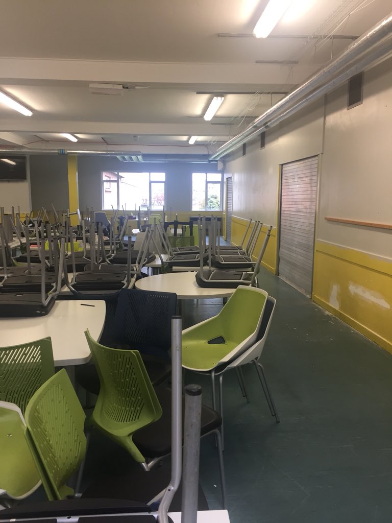 It may be the holidays but it’s all go in our dining centre! Goodbye blue, purple, green and yellow, hello calming neutral grey.