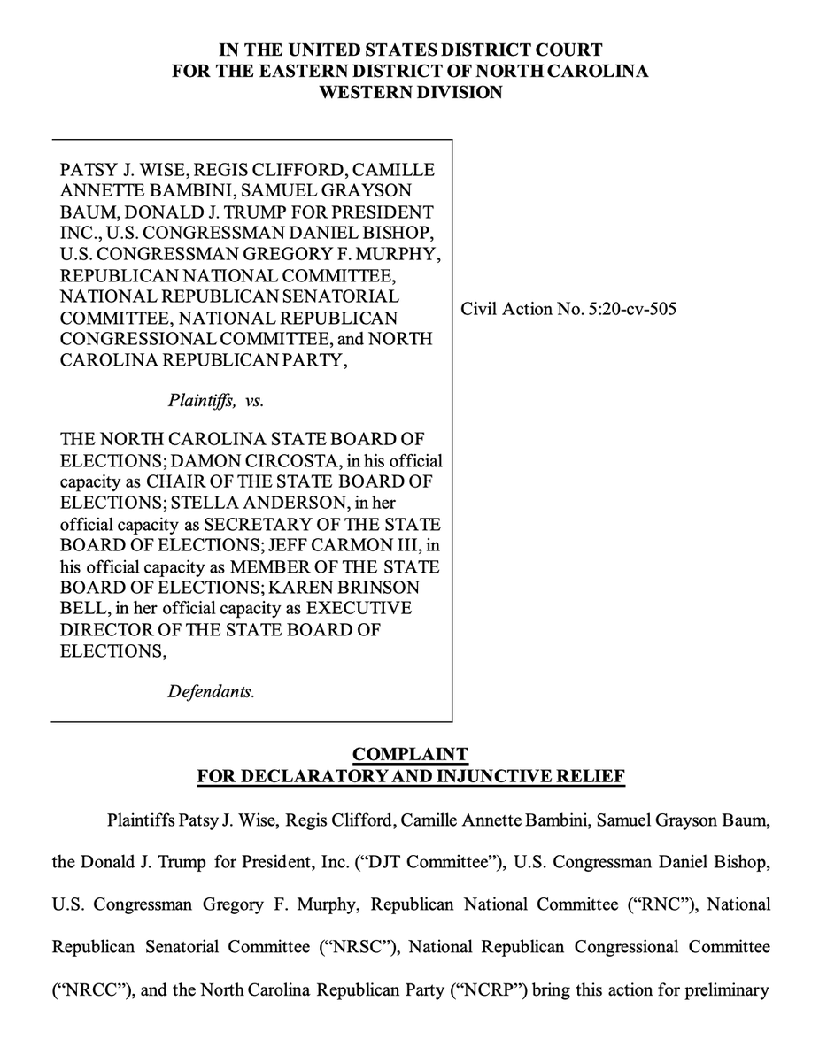 🚨BREAKING: Republicans file TWO federal lawsuits tonight to try to block @activeretirees' North Carolina absentee voting settlement from taking effect and protecting voting rights. They are desperate to stop NC voters from having their votes counted. https://www.democracydocket.com/state/north-carolina/ … pic.twitter.com/Ni0yX7fyko