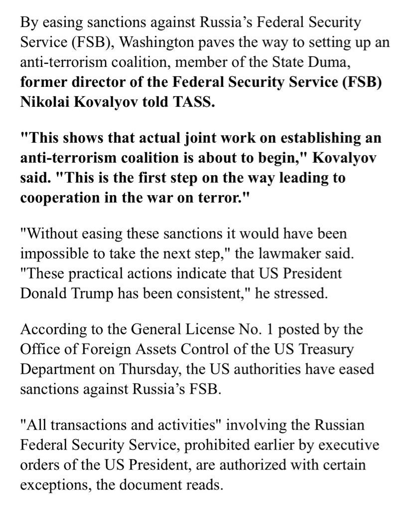 NEW: Russia's fmr FSB head calls US sanctions change "the first step." http://tass.com/politics/928745 pic.twitter.com/Sdi0dAYpAA