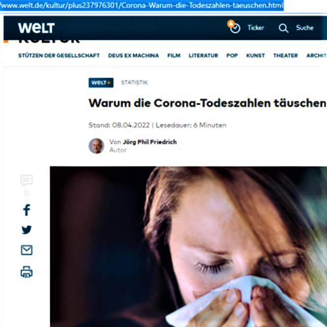 Nach vollen zwei Jahren in der WELT: "AN oder nur MIT C. gestorben? Warum die Corona-Zahlen täuschen" => Schön, liebe Schlafmützen der WELT, dass ihr euch nach zwei Jahren(!) nun endlich ... Mehr: https://t.me/pboehringer/1537 …