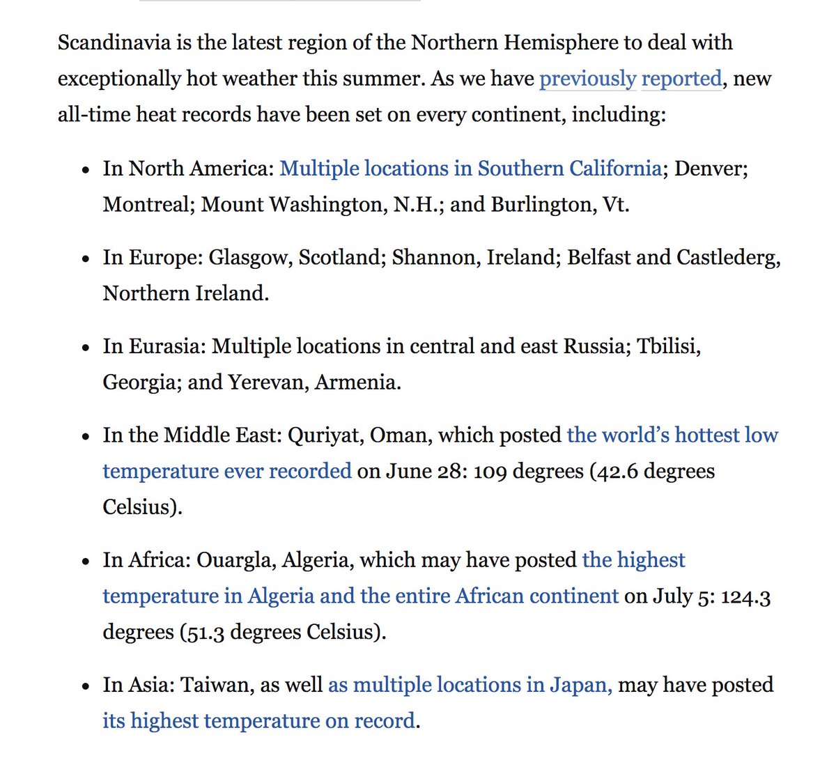 Temperatures pushed 90 degrees up to the Arctic Circle in Scandinavia Tuesday. Also... https://www.washingtonpost.com/news/capital-weather-gang/wp/2018/07/17/scorching-scandinavia-record-breaking-heat-hits-norway-finland-and-sweden/ …pic.twitter.com/Q2mD0yYNBr
