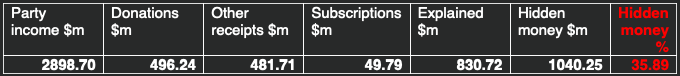 #AEC data on#auspol donations has been released this morning and we are frantically working our way through it. In the meantime please enjoy this little snippet: $1 billion of party income has not been disclosed since 1999 - equating to 36% of income being hidden.pic.twitter.com/OTRn1K5aWt