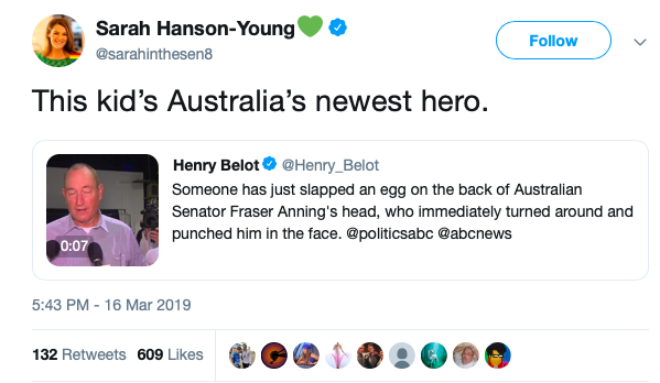 Just image the outrage if someone slapped an egg on Sarah Hanson-Young's head.