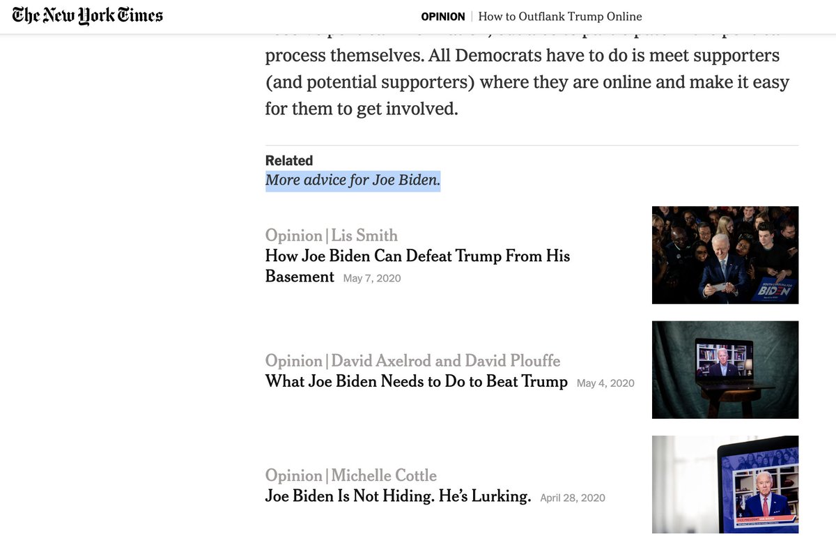 How about Joe Biden as a starter come out with a message as to what the theme of his campaign is? All I see is an old man with cognitive issues stuck in the basement.