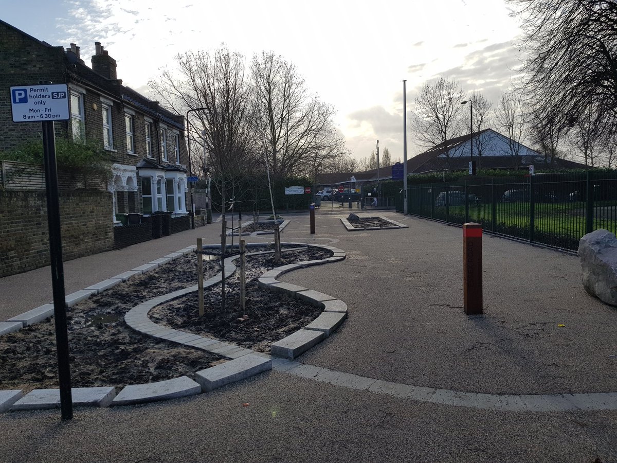 @wfcouncil#CopperMill#LiveableNeighbourhood works on#EssexRdE17 today.#RainWaterGarden#Trees & encouraging#ChildrensPlay feature in the design- note the weaving trail.@WeSupportWFMH@livingstreets@willnorman@sustranspic.twitter.com/OWmPiEgkcX