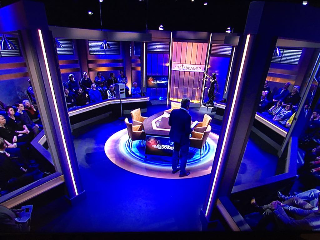 Samen met de panelleden - aanklagers, advocaten, rechters, politiemensen en crimereporters - in het decor van mijn nieuwe tv-programma 'De Raadkamer'. Donderdag om 21:30 uur bij SBS6. De Toestand in de Onderwereld... Kijk!pic.twitter.com/6vyepwsxiI