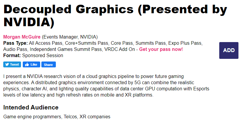 I'll be presenting our new ideas from NVIDIA research for high quality, high speed graphics powered by the cloud Friday 3pm @ GDC2020 https://schedule.gdconf.com/session/decoupled-graphics-presented-by-nvidia/873807 …pic.twitter.com/CZuvcoXhG9