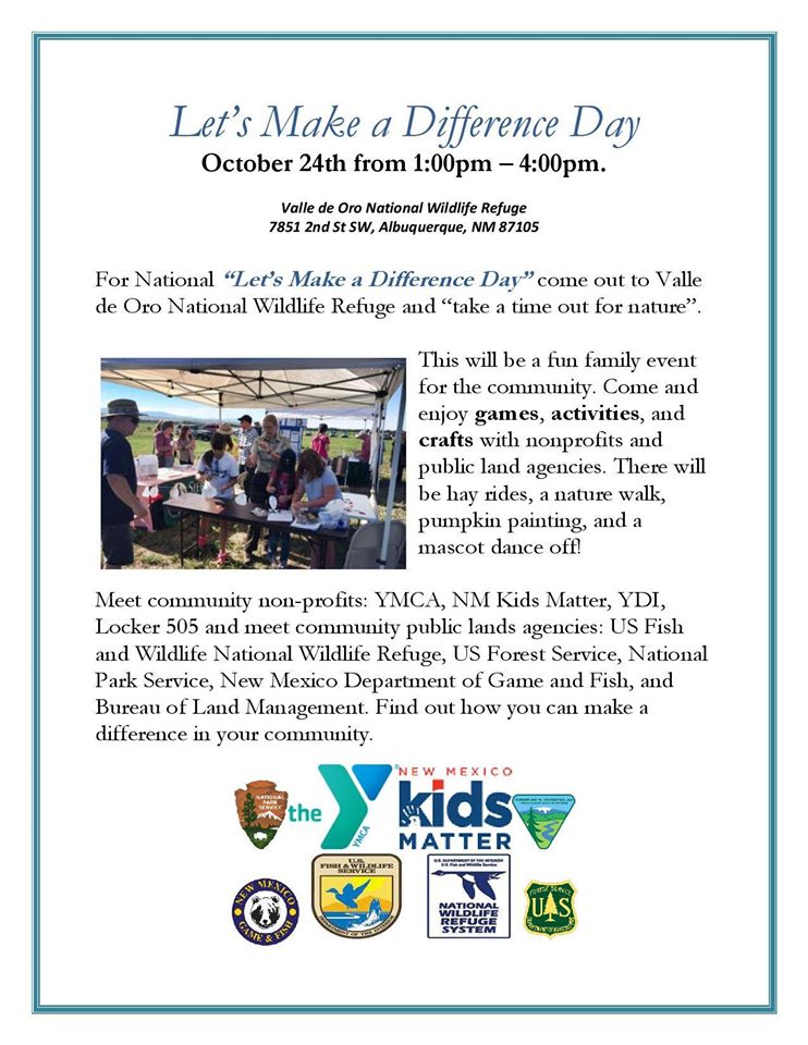 Tomorrow is Make a Difference Day there will be some fun events at Valle de Oro Wildlife Refuge like hay rides!pic.twitter.com/SFGrrKo2mR