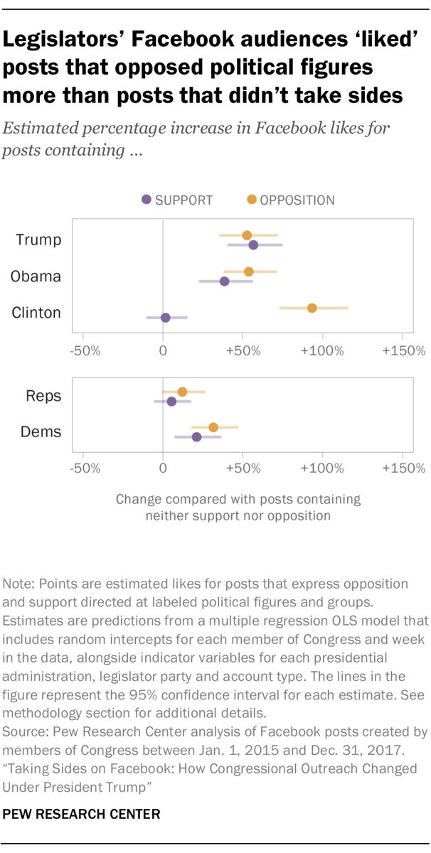 @pewresearch study found that U.S. legislators’ Facebook audiences “liked” posts opposing political figures more than posts that didn’t take sides. https://pewrsr.ch/2LgnZqY pic.twitter.com/anMnQ7zruK