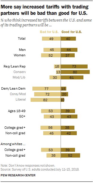 @pewresearch data on#tariffs: More think their impact on the U.S. will be bad (49%) than good (40%). Full post up on@FactTank: https://pewrsr.ch/2NudPEd pic.twitter.com/qrUZESTLXE