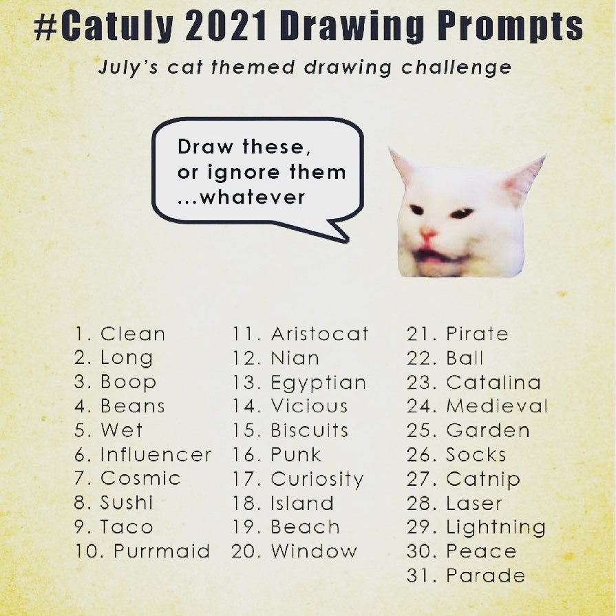 #catuly Prompts (very optional) were a collaboration with@herfeeney who has been organizing this after I somehow invented Catuly last year.#catuly2021#july2021#drawingchallenge#cats#artpic.twitter.com/AkC7UVsnOw