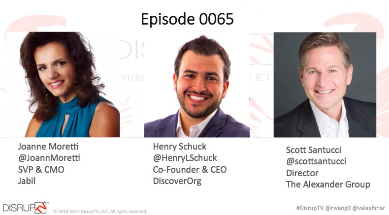 @DisrupTVShow (2PM ET), join@rwang0 and me with guests:@JoannMoretti@HenryLSchuck@scottsantucci#DisrupTV http://bit.ly/2rJkaVs pic.twitter.com/rTwcwNAul2