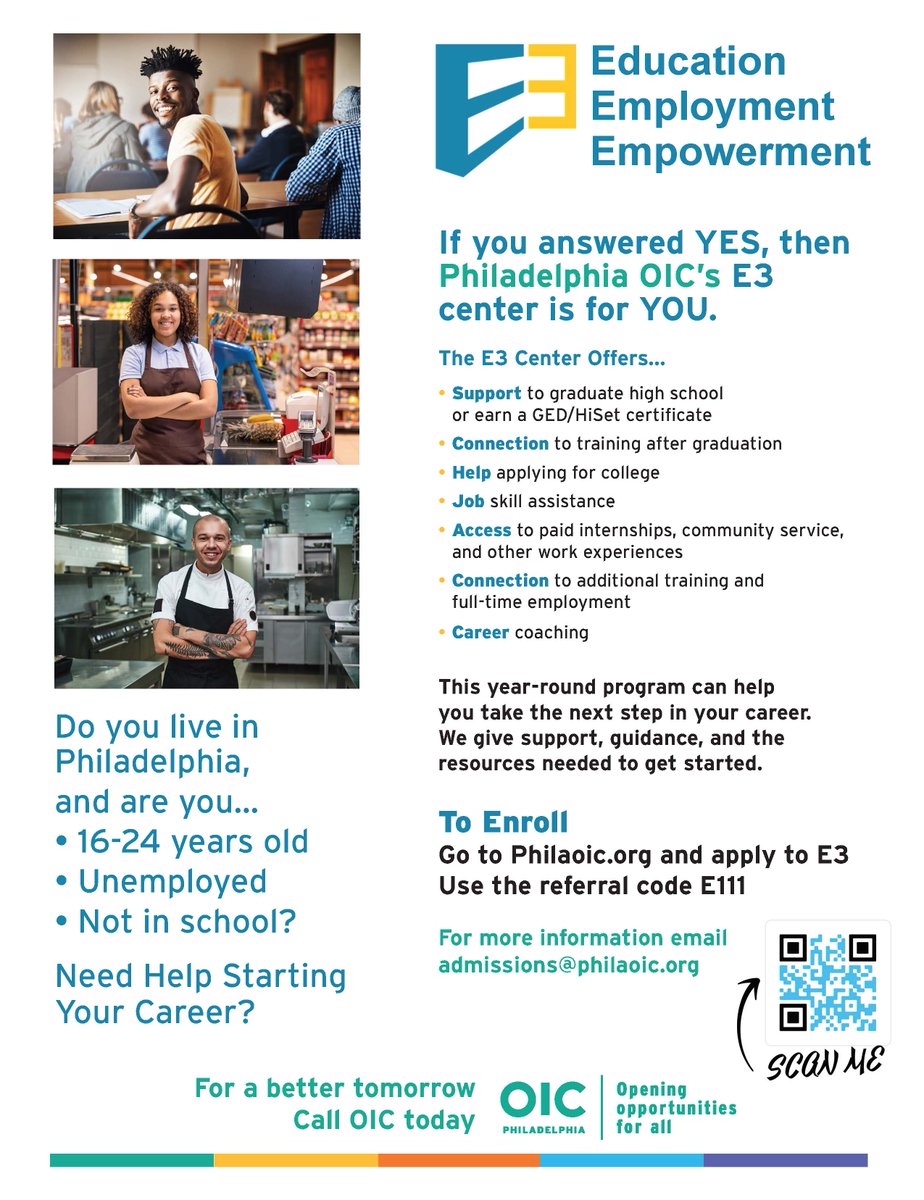 The E3 Center will also be hosting in-person enrollment sessions every Tuesday from 3-6PM, located at 1231 N. Broad St. Phila, Pa 19122pic.twitter.com/1duZqZBHs3