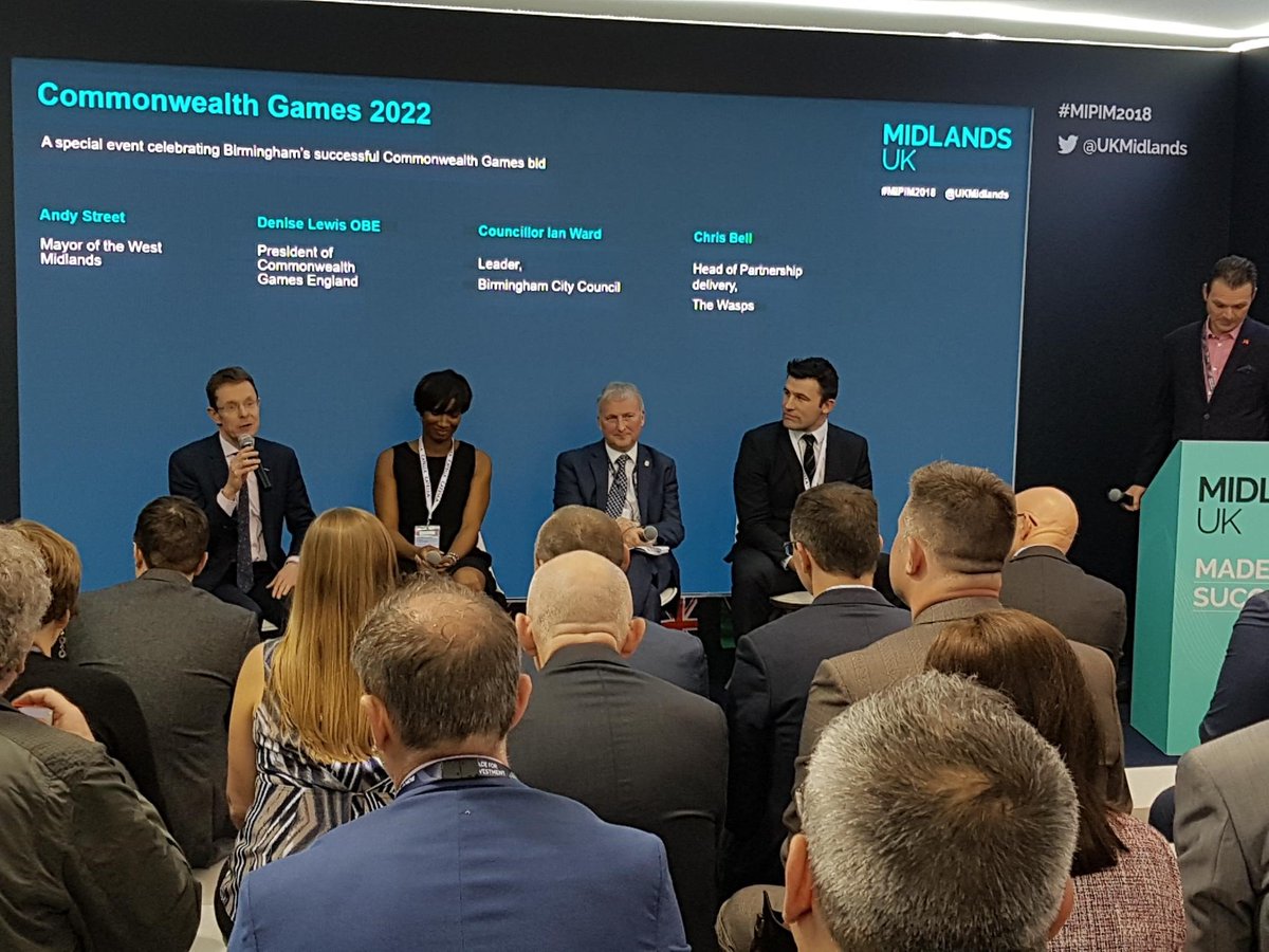 @UKMidlands panel discussion today w/@RealDeniseLewis on Birmingham's bid to host the Commonwealth Games. Thanks for holding such an informative (and celebratory) session#CommonwealthGames2022#MIPIM2018@MIPIMWorldpic.twitter.com/9EacmY1Lf5