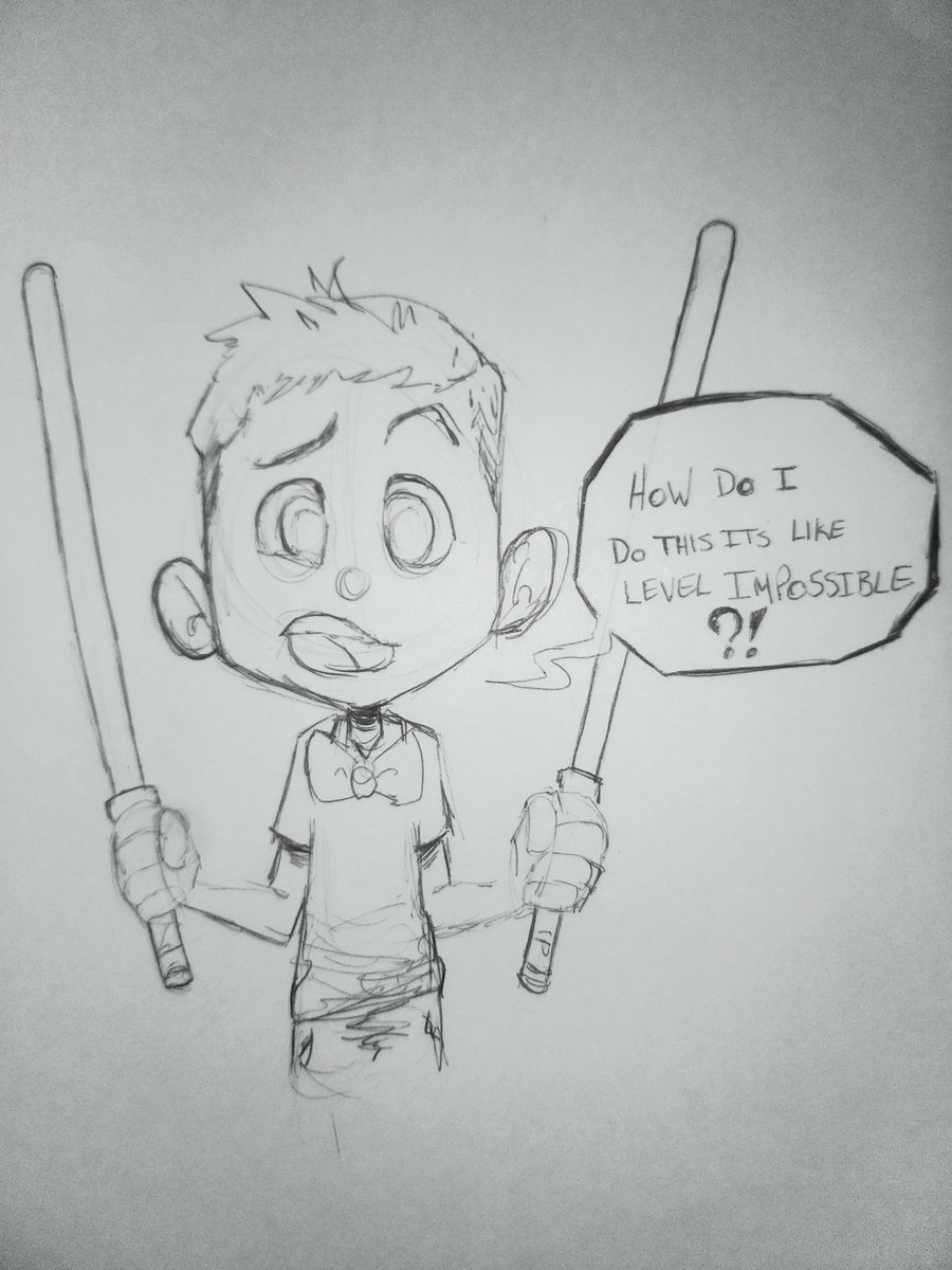 Can't post what I've been working on so here's a drawing of my 4 year old son playing beat sabers (via YouTube let's plays and his modified water guns turned light sabers :) ) one day I'll afford to get him the real thing lolpic.twitter.com/42oPq9yG6G