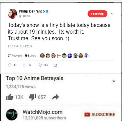 Philip DeFranco in 5 years: "Now, I'm sorry this show is 45 minutes long, I know, that's shorter than usual, but one of my editors is sick."
