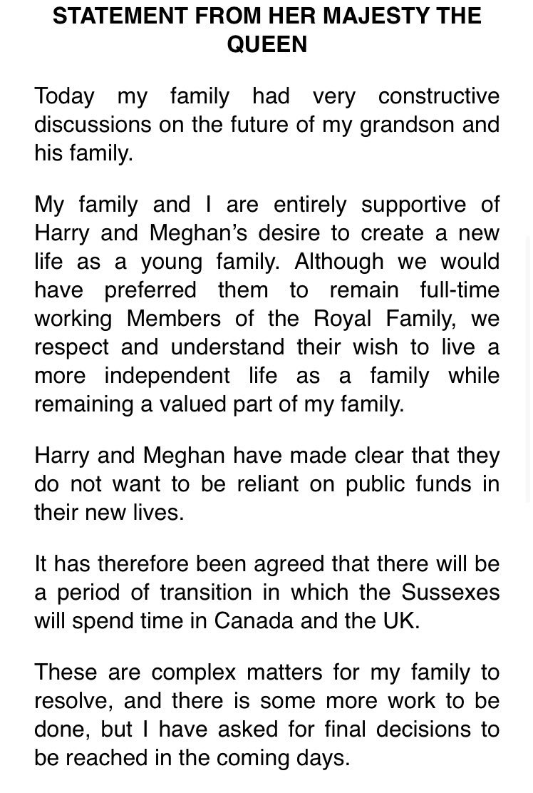 Statement from the Queen after she met with Prince Harry. “My family and I are entirely supportive.”pic.twitter.com/FjHGHcGvNo