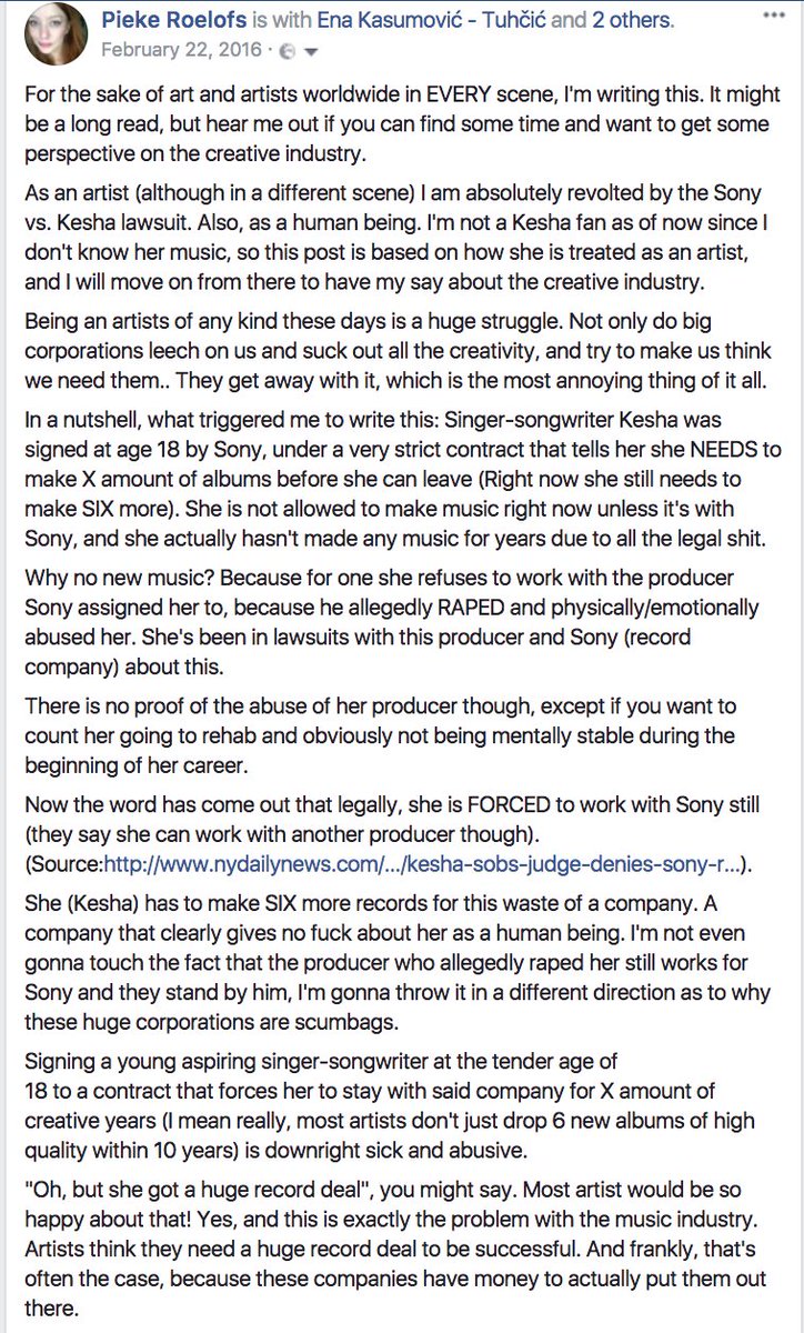 Pieke Roelofs @PhotoandGrimeHey@Exurb1a remember when I was an activist for ra/ped artists in Feb. 2016 already? That was 8 months before you ra/ped me. Still haven't lost my morals. What's your history? You ra/ped and blackmailed me and you and your fans fans spread lies about me. https://www.facebook.com/fotoshoots/posts/1046183445441197 … pic.twitter.com/dUrzHur3uoShow this thread1 reply 3 retweets 7 likesShow this thread -