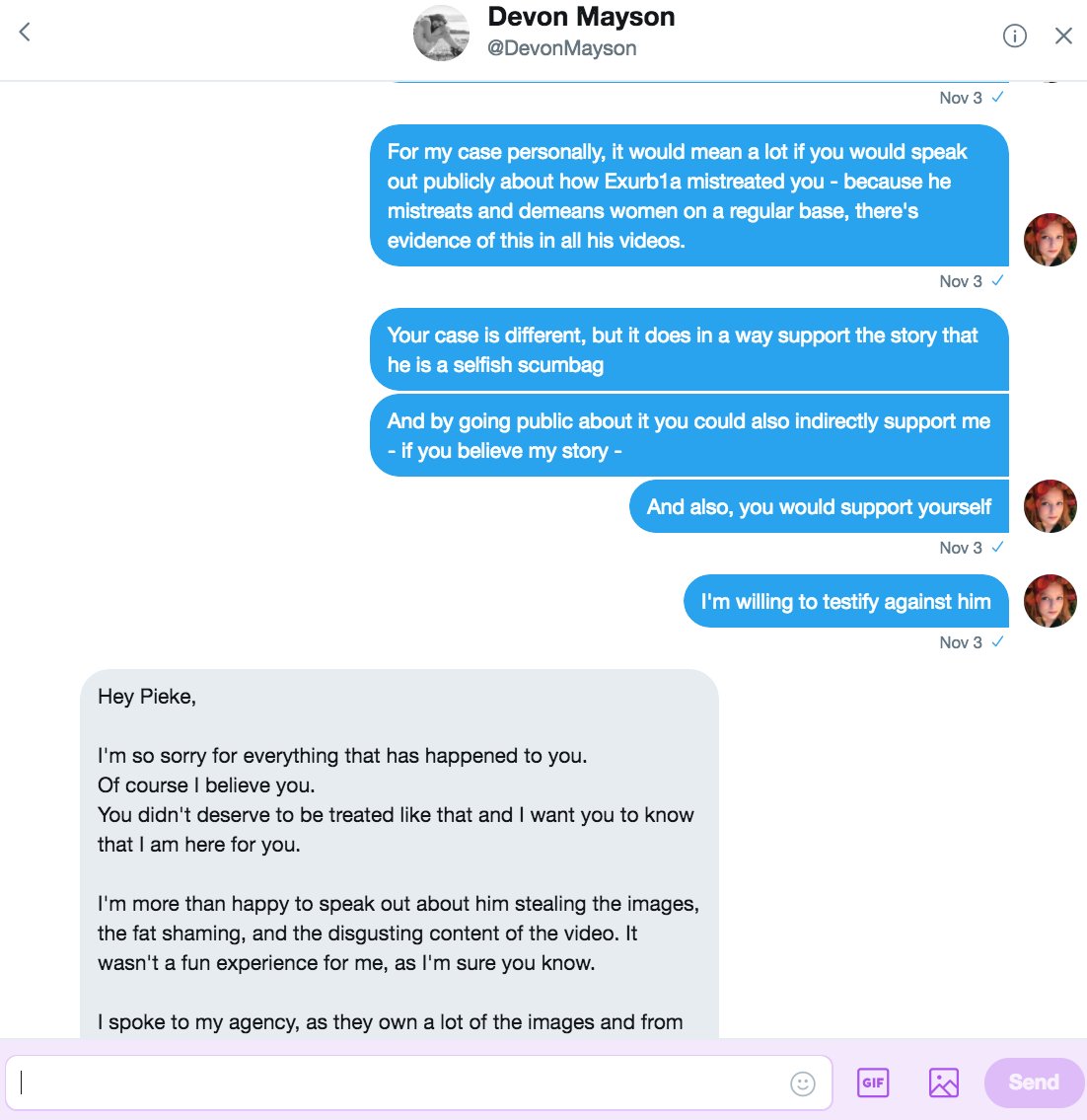 @Exurb1a introduced me as 'insane' too towards his parents? Will you listen when I say abusers say these things so it's easy for them to denounce their victims once they mistreat them? https://twitter.com/PhotoandGrime/status/960157766177390592 …#TIMESUPYOUTUBE@SusanWojcicki@TeamYouTubePieke Roelofs added,