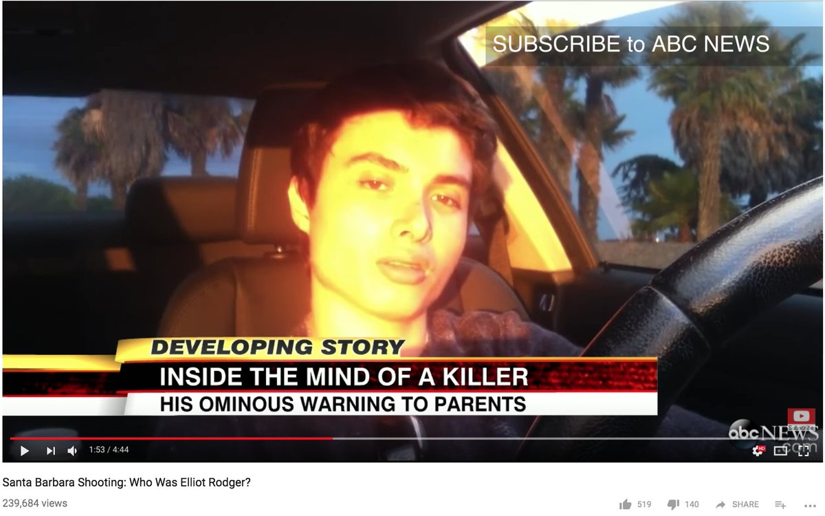 #2018needstochange 'Hero' of the Incel community, murderer Elliot Rodger, a son of a Hollywood filmmaker, killed 6 people in 2014. He was frustrated about being a virgin at 22.