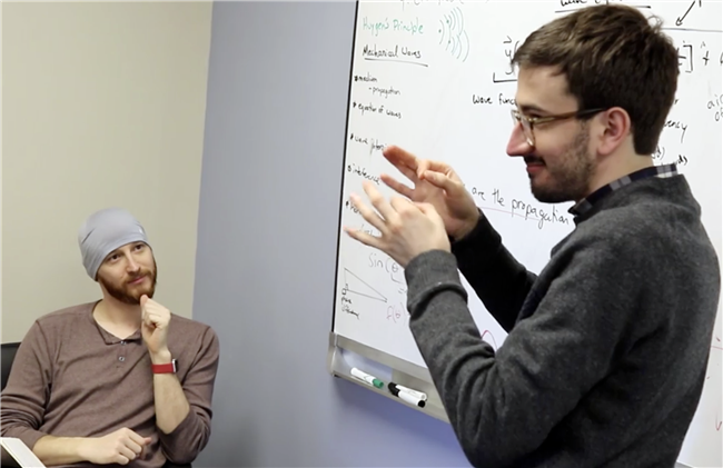 Illinois Physics grad student Colin Lualdi is working with two national initiatives to help build a scientific lexicon for American Sign Language! Lualdi is a member of Paul Kwiat's research group, doing cutting edge quantum information science research. https://buff.ly/2KT3AKE pic.twitter.com/AHwybEn5qO