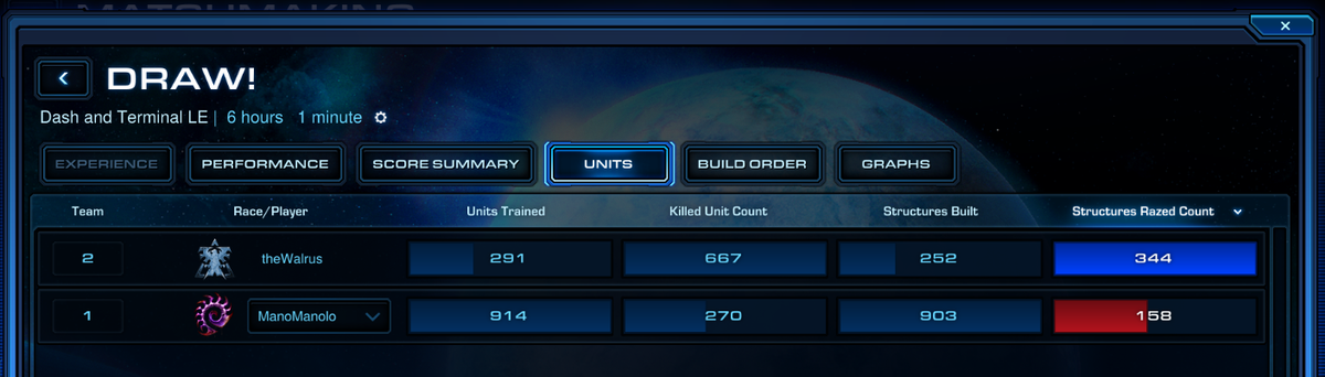 How I spent my last 6 HOURS...a draw. I managed to snipe all his buildings except for the...uh...40 spore crawlers.pic.twitter.com/sdqzCER8A5