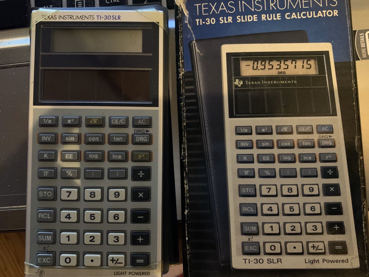 Thanks for reminding me! I’d forgotten about it because I never use it any more. Bought in 1985. Miraculously solar powered. Good old Texas Instruments.pic.twitter.com/36b2urpdYN