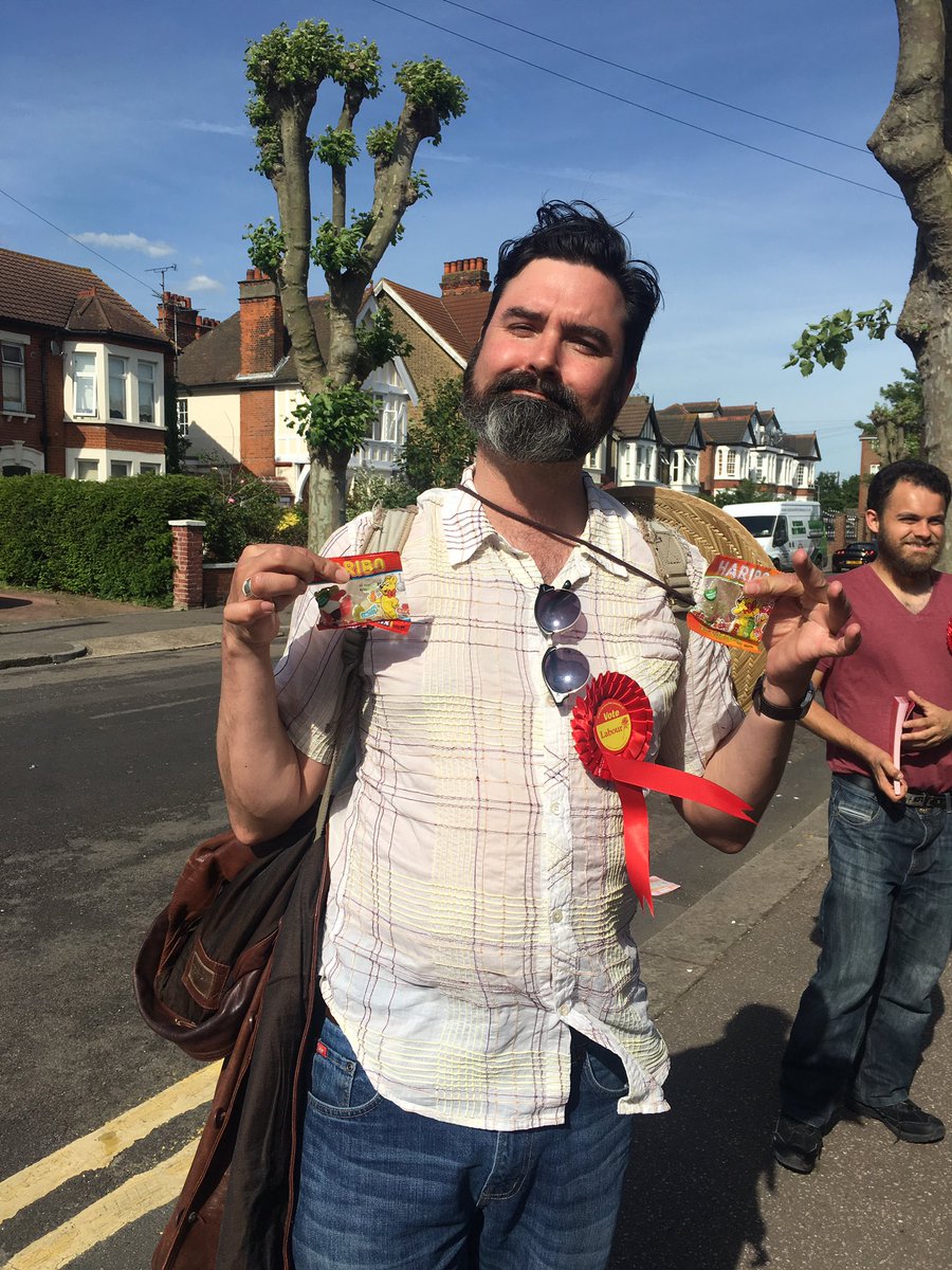There's a bag of Haribo for whomever hands out the most Labour posters to voters on our