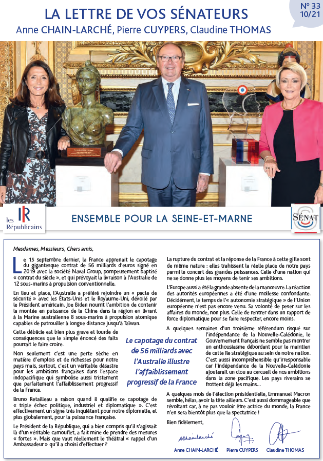 Le dernier numéro de la lettre parlementaire que nous éditons avec mes collègues sénateurs