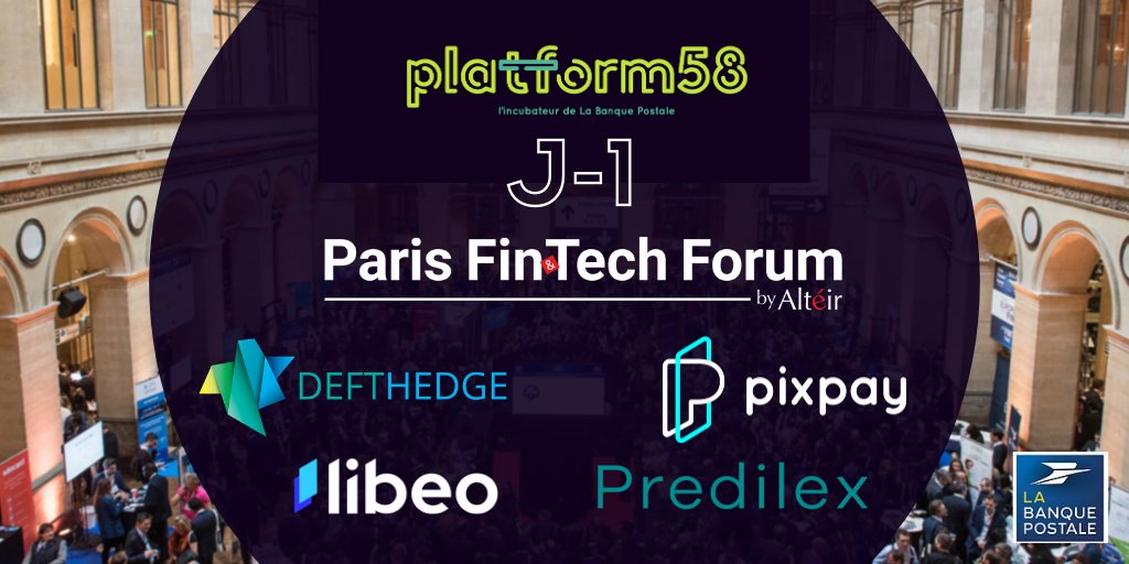 Dernière ligne droite avant le début du @ParisFinForum Vous souhaitez rencontrer les équipes de@DEFTHEDGE@pixpay_app@predilex et@InsideLibeo ? Nous vous attendons dès demain sur le stand de#platform58, l'incubateur de@LaBanquePostale (S49)pic.twitter.com/jZ2TNhmYXU
