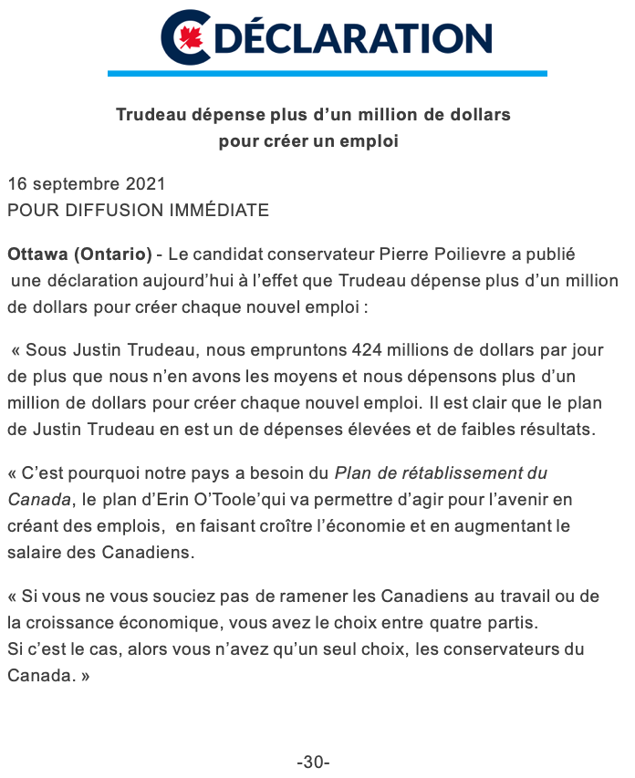 Trudeau dépense plus d’un million de dollars pour créer un emploi.pic.twitter.com/zNhb9VurZ5