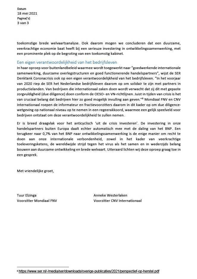 Onze brief aan informateur Hamer en de fractievoorzitters: Investeer ons ook internationaal uit de coronacrisis. Dus terug naar 0,7% voor ontwikkelingssamenwerking. Perspectief voor NL én landen waar we handelsrelaties hebben