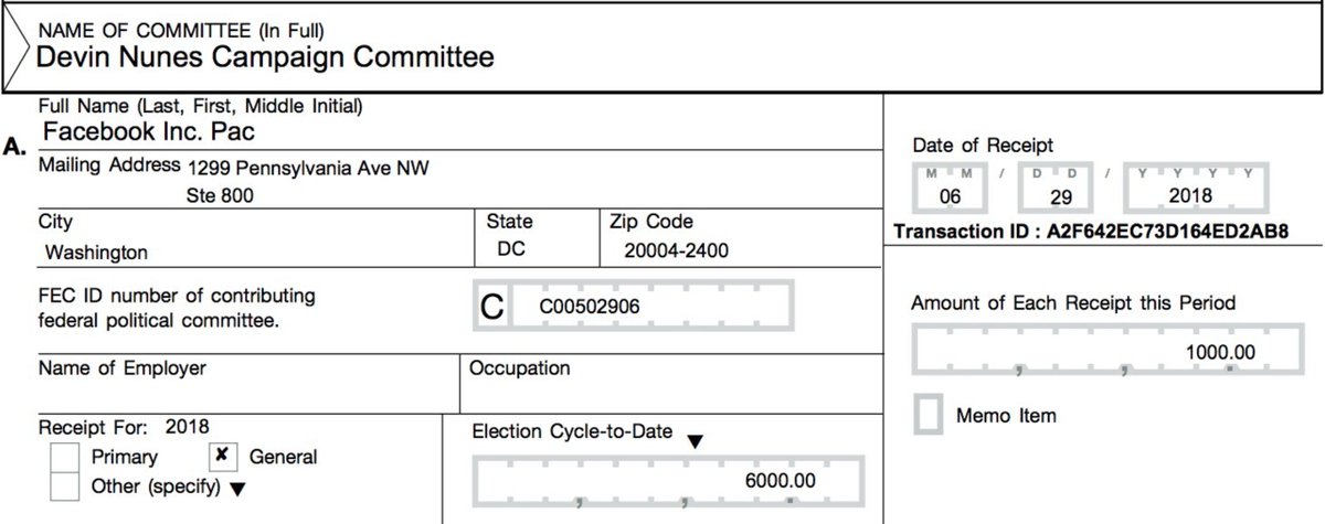 (And keep in mind that Facebook's latest donation to Devin Nunes was made one month ago. It's not like they were only backing him when he was a fresh face who hadn't disgraced himself and his country by trying to derail the Russia investigation)pic.twitter.com/3tm8kMvnYq